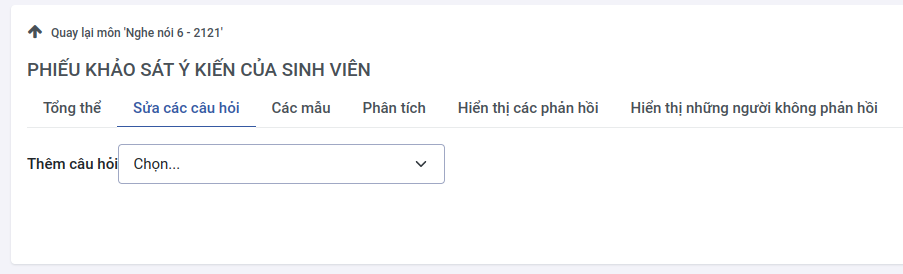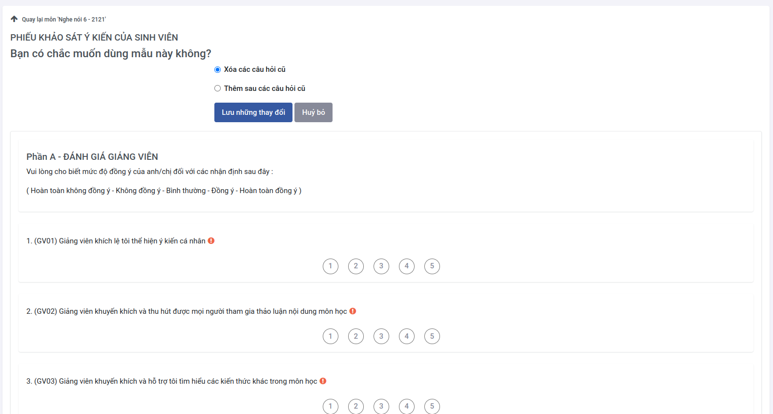 - Xóa các câu hỏi cũ : Xóa các câu hỏi củ và thêm vào các câu hỏi mới từ trong mẫu có sẵn