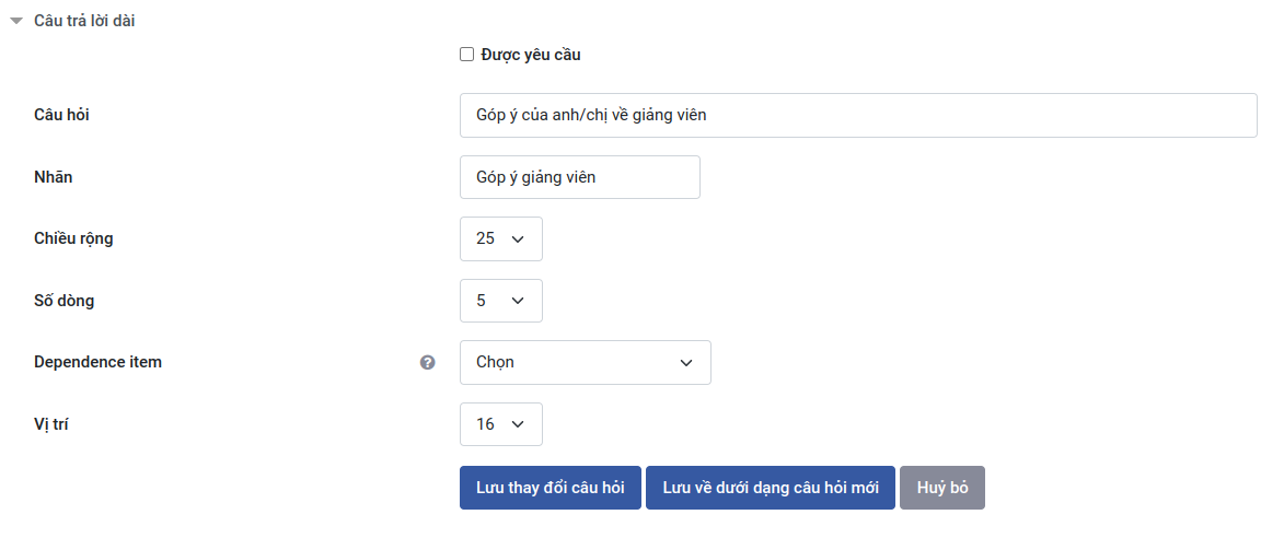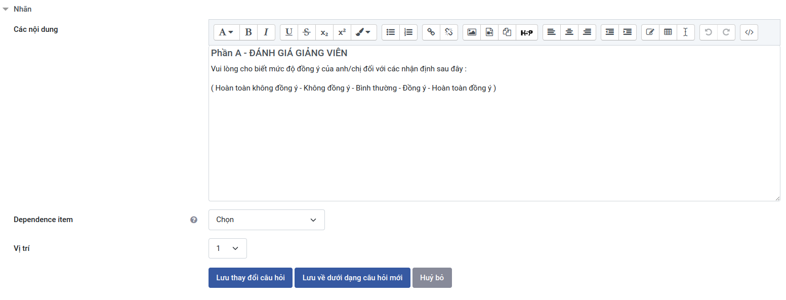 - Nhãn: Nhập nhãn cho câu hỏi