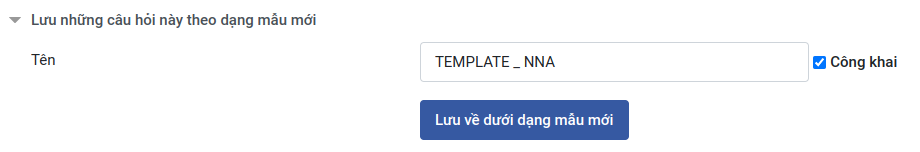B2: Đặt tên cho mẫu câu hỏi và nhấn chọn Công khai( Mẫu câu hỏi sẽ có thể dùng cho mọi môn học)