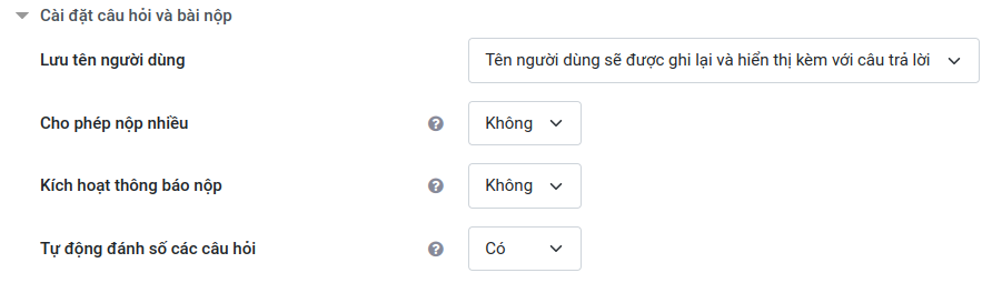 - Tự động đánh số các câu hỏi: Chọn Có