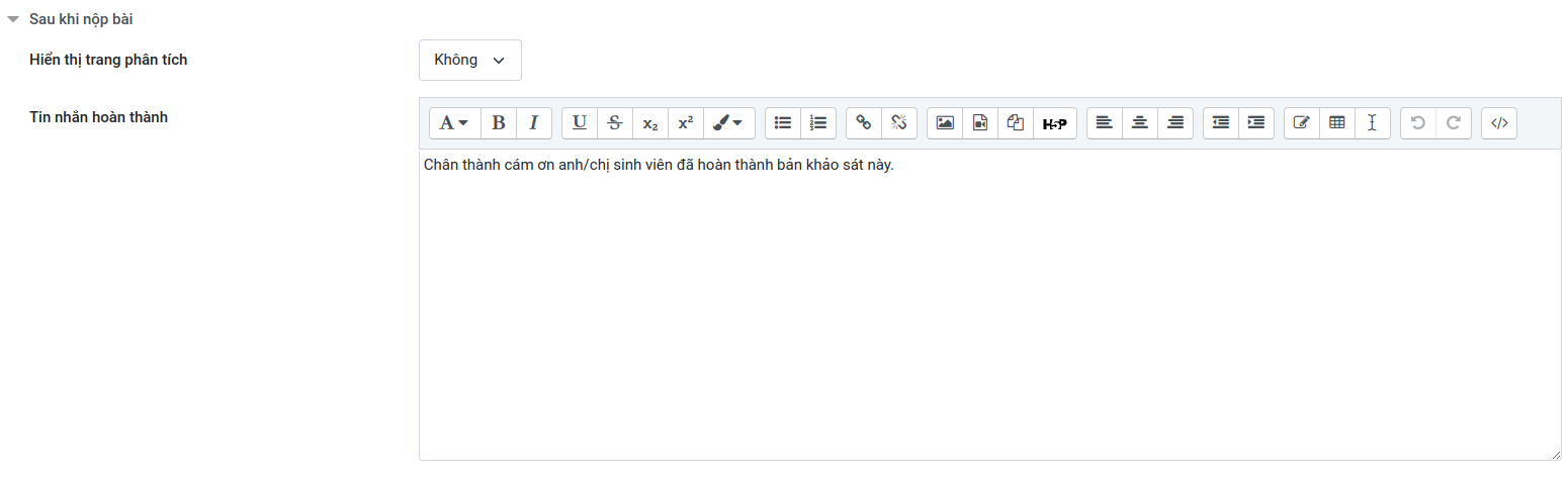 Sau khi nộp bài - Hiển thị trang phân tích: Chọn Không
