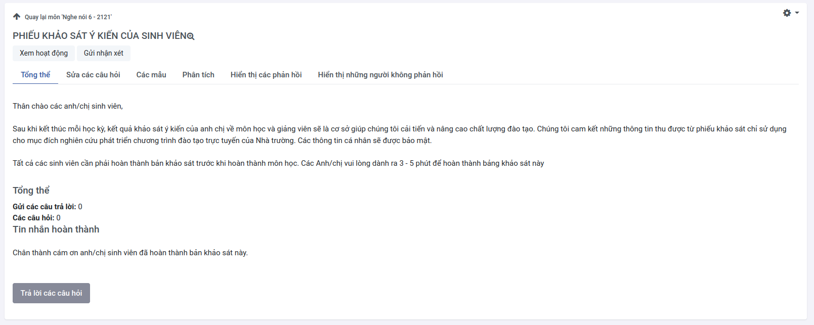 Ở giao diện hoạt động feed back sinh viên nhấn vào nút Trả lời câu hỏi để thực hiện phản hồi.