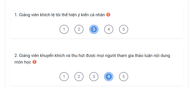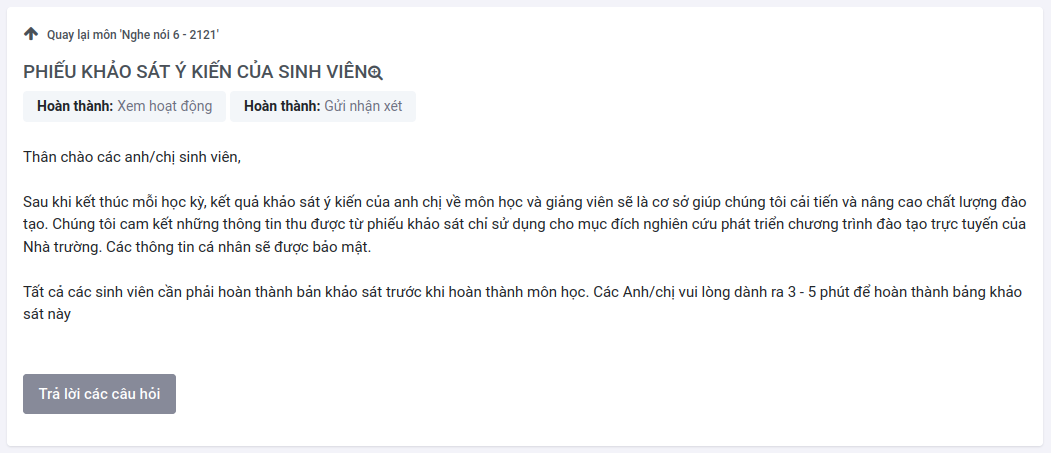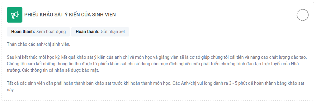 Hoạt động Nhận xét cho phép tạo và thực hiện các cuộc khảo sát để thu thập phản hồi của sinh viên